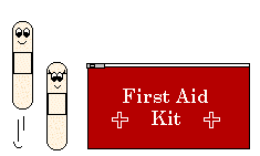 Gauze sponges -- 50 four-by-four inch sponges, two per envelope Triple antibiotic ointment Rubbing alcohol Ear syringe -- two ounce capacity Ace self-adhering athletic bandage -- three-inch width White petroleum jelly (Vaseline or similar) Eye wash Sterile, non-adherent pads Pepto Bismol tablets Generic Benadryl capsules -- 25mg, for allergies Hydrocortisone acetate -- one percent cream Sterile stretch gauze bandage -- three inches by four yards Buffered aspirin Dermicil hypoallergenic cloth tape one inch by 10 yards Hydrogen peroxide Kaopectate tablets maximum strength Bandage scissors Custom splints Vet Rap bandage Other suggested items were: Blanket Tweezers Muzzle Hemostats Rectal thermometer Ziplock bags |